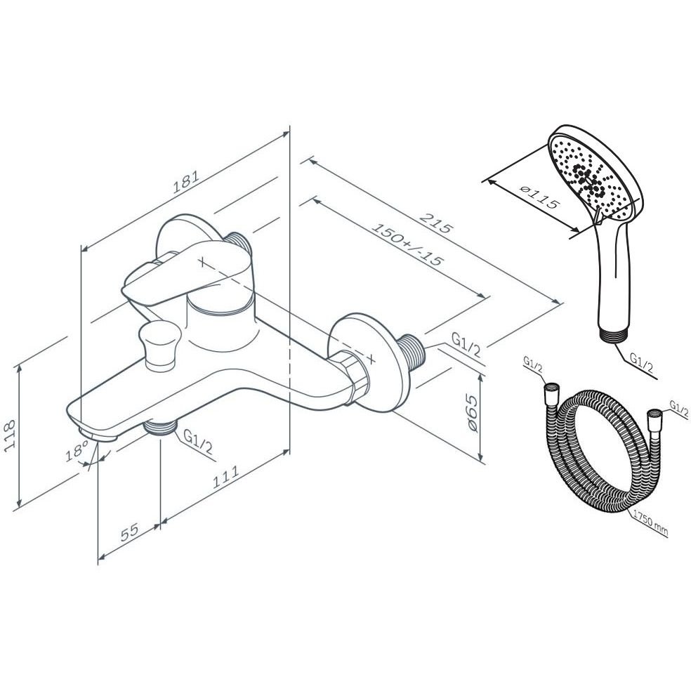 Комплектация:F85E15000 Joy, смеситель для ванны/душа, душевой набор, хром, шт. p>