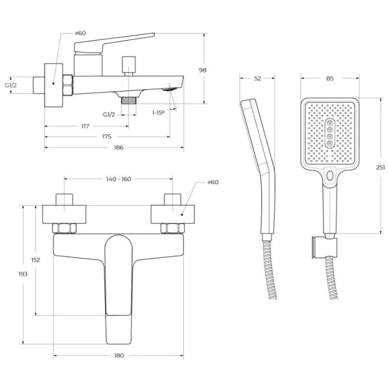 Оснащение:Аэратор, Металлическая розетка, Эксцентрики, Душевой шланг, Душевая лейка, Держатель для душевой лейки p>