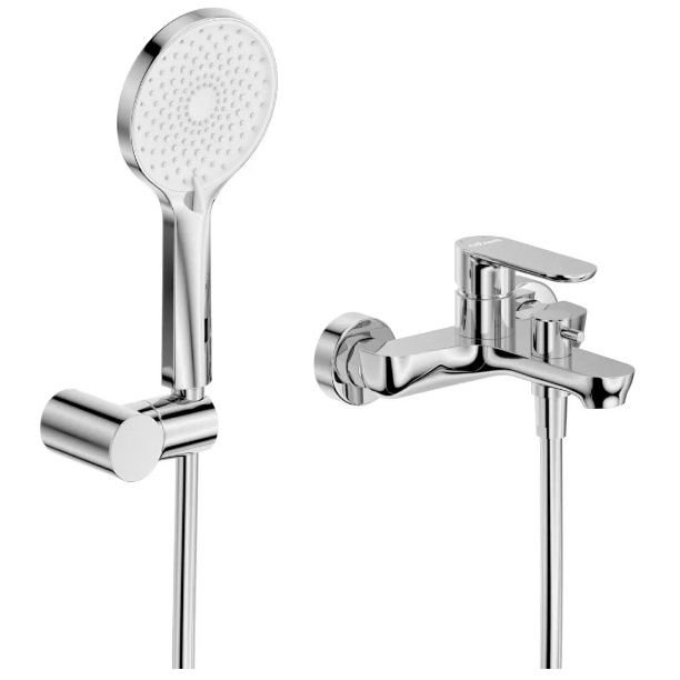 Смеситель для ванны и душа Cezares (Цезарис) однорычажный в комплекте с ручным душем, шлангом и держателем, хром STYLUS-VD-01