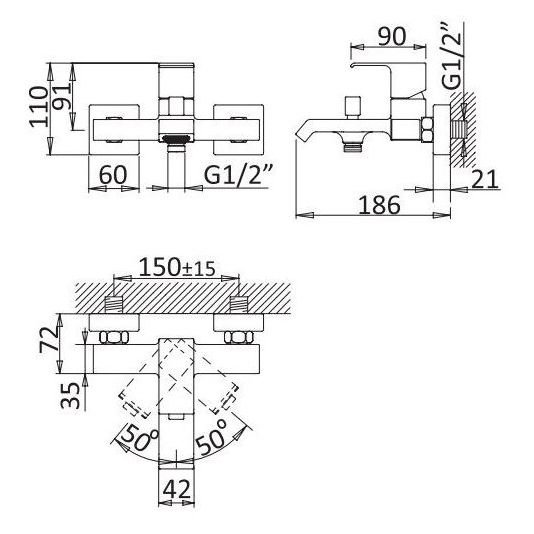 Смеситель для ванны с душем Fauzt (Фауцт) FZs-471-54 тип См-ВУДРНШлА, хром