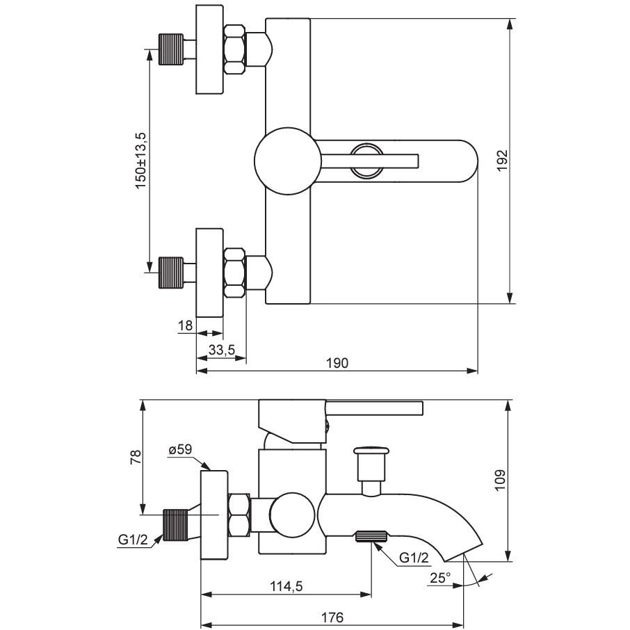 Смеситель для ванны термостатический Bravat (Брават) Nizza F6353387CP-01-RUS, хром