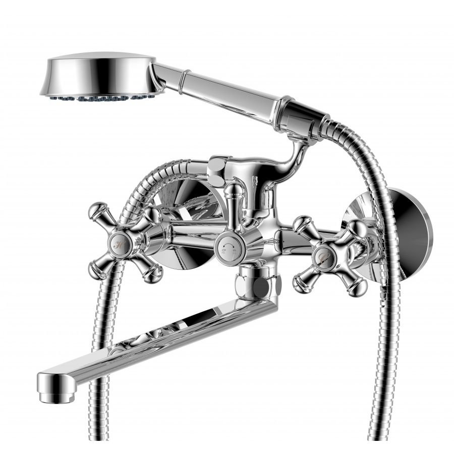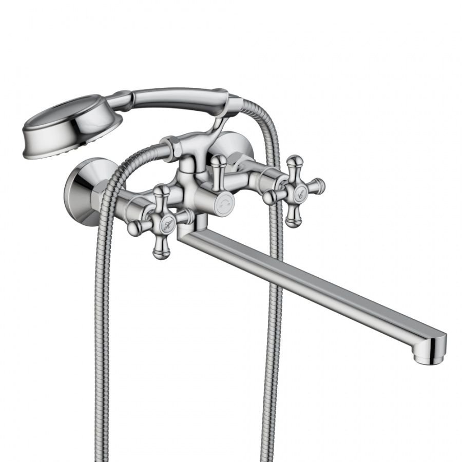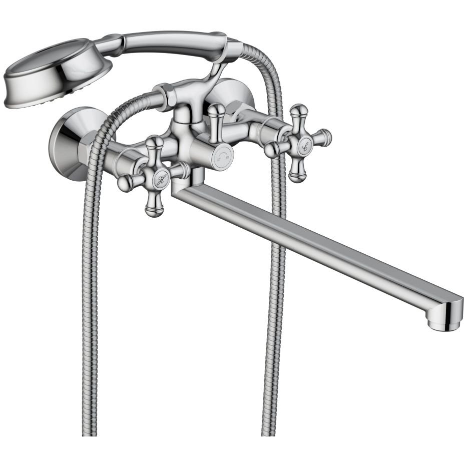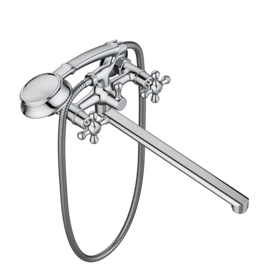 Смеситель для ванны и душа RedBlu by Damixa (Дамикса) Retro, с длинным изливом, душевым гарнитуром, хром, 239500000