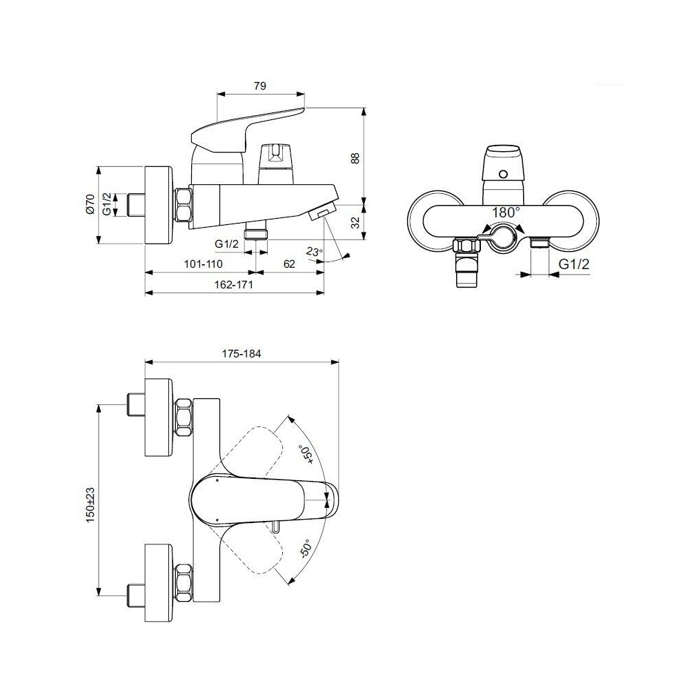 Настенный смеситель для ванны B1740AA Ideal Standard CeraFlex (хром). Смеситель для ванны/душа, с керамическим переключателем, монтаж на стандартных эксцентриках (в комплекте: эксцентрики, металлические отражатели, уплотнительные прокладки), литой излив, аэратор PERLATOR, новый керамический картридж IS 40 мм с функцией HWTC (ограничение максимальной температуры горячей воды), с функцией CLICK (ограничение потока воды), металлическая рукоятка, индикатор холодной/горячей воды, переключение ванна/душ - ручной керамический переключатель D25 (позволяет использовать функцию "душ" даже при очень низком давлении воды), обратный клапан. Пропускная способность: 20/13 л/мин. Гарантия: 5 лет. Производство: Европейский концерн.