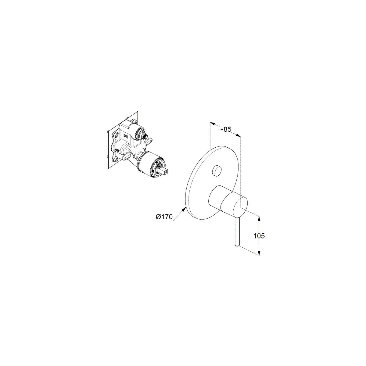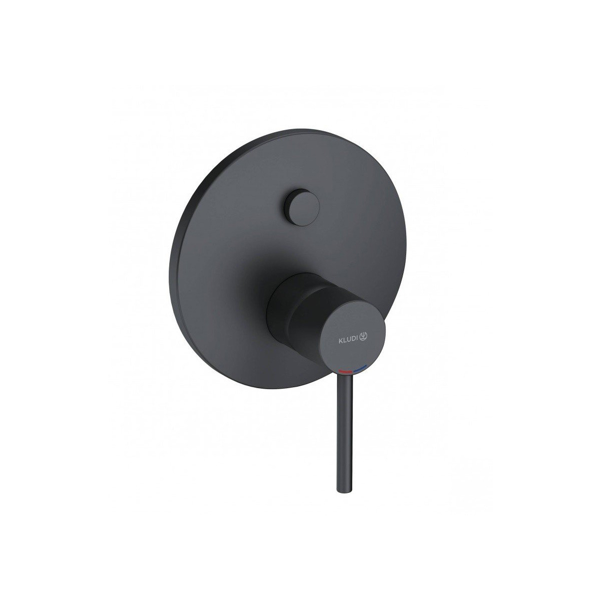 Kludi Bozz 386593976 Смеситель для ванны - внешняя часть (чёрный матовый). Встраиваемый смеситель для ванны и душа, внешняя монтажная часть для встраиваемого блока 88011; литой рычаг; автом. переключатель душ/ванна PUSH & SWITCH; керамический картридж с ограничителем горячей воды; расход воды 29 л/мин (нижний выход); 22 л/мин (верхний выход) при давлении 3 бара.