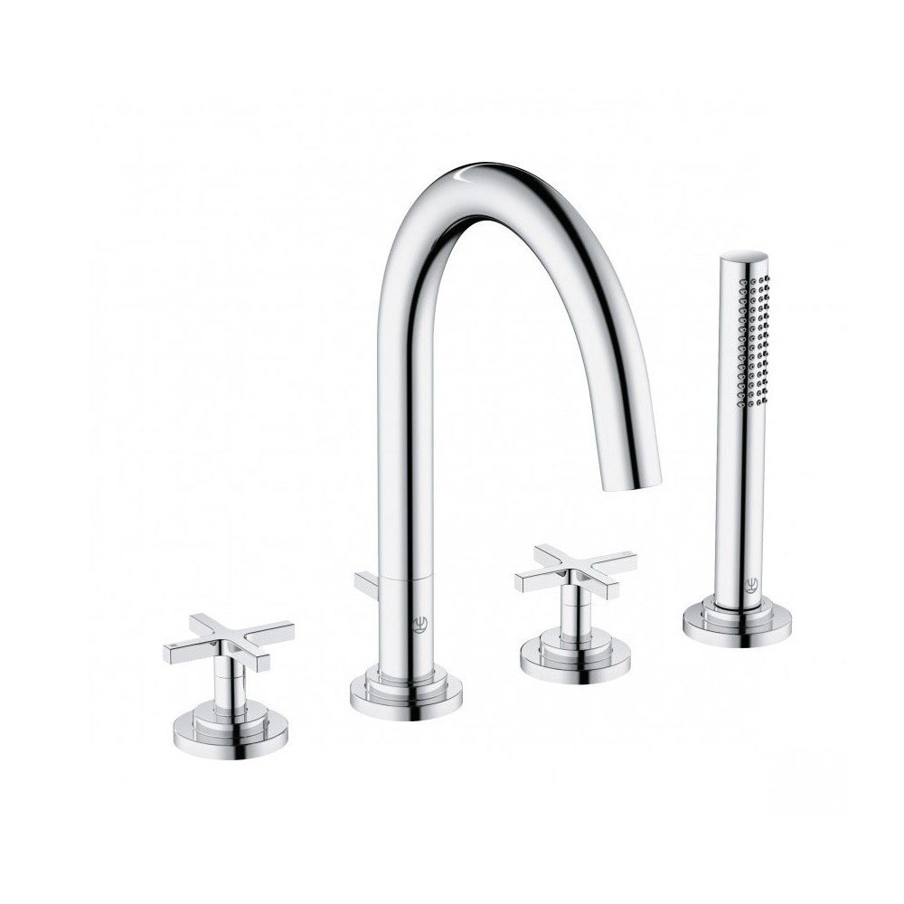 KLUDI Nova Fonte Classic 204250520 Смеситель на борт ванны (хром). Вертикальный монтаж на 4 отверстия; крестообразные рукоятки; керамические кран-буксы 90° Soft-Start; расход воды 27 л/мин при давлении 3 бара; автом. переключатель душ/ванна; клапан защиты от обратного потока; выдвижная душевая лейка NOVA FONTE; душевой шланг 1500 мм; шланги высокого давления G 1/2 x G 1/2 x 400 мм; длина излива 215 мм.