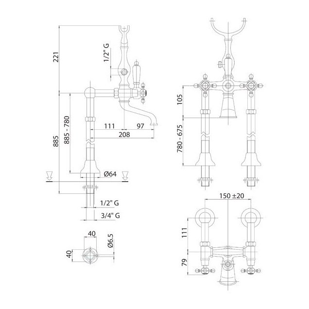 Смеситель для ванны Webert (Веберт) Armony AM720201010(153) , золото