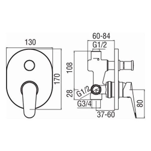 Смеситель для ванны NOBILI (НОБИЛИ) Blues BS101100CR Chrome (внешняя и скрытая часть)