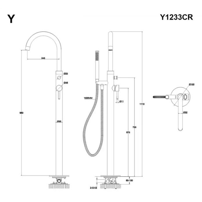 Смеситель для ванны отдельностоящий Whitecross (Вайткросс) Y Y1233BL (черный мат)