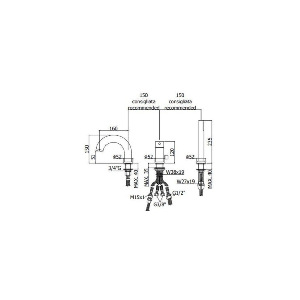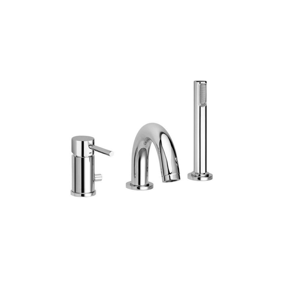 Paffoni Light LIG040LCR Смеситель на борт ванны (хром). Монтаж на три отверстия. С автоматическим переключателем душ / излив. Излив 160 мм. В комплекте с ручным душем и выдвижным шлангом 175 см.