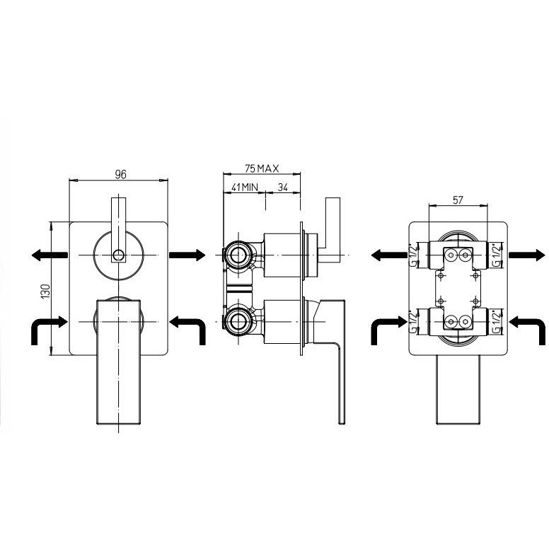 Встраиваемый смеситель для ванны Paini Grazia позволяет распределить поток воды на два выхода и подключить несколько устройств, например, верхний душ и ручную лейку.