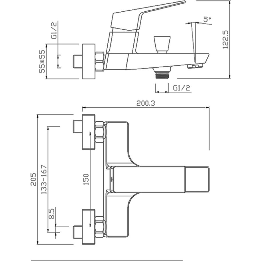 Смеситель для ванны Savol (Савол) (S-T2206) Хром