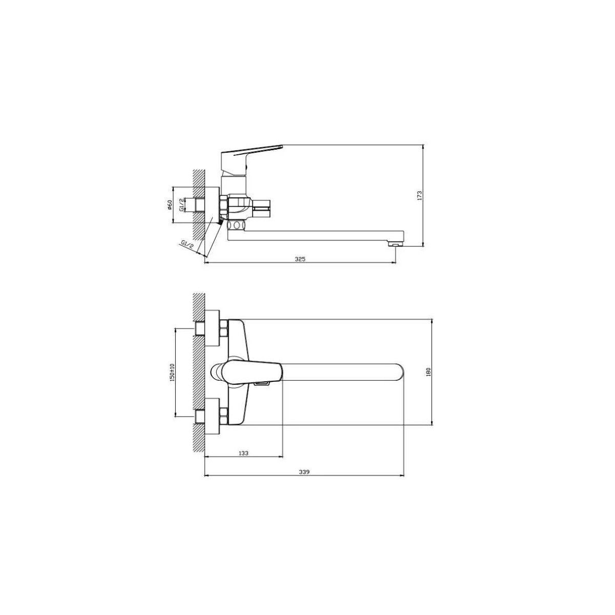 Длина излива (мм):325 p>