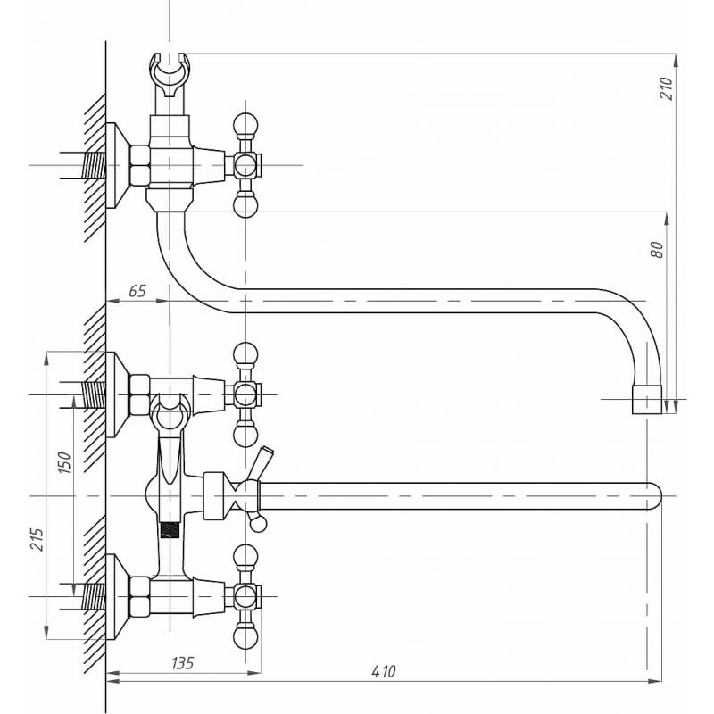 Смеситель для ванны с душем Fauzt (Фауцт) FZs-428-54 тип См-ВУДРНШлА, хром
