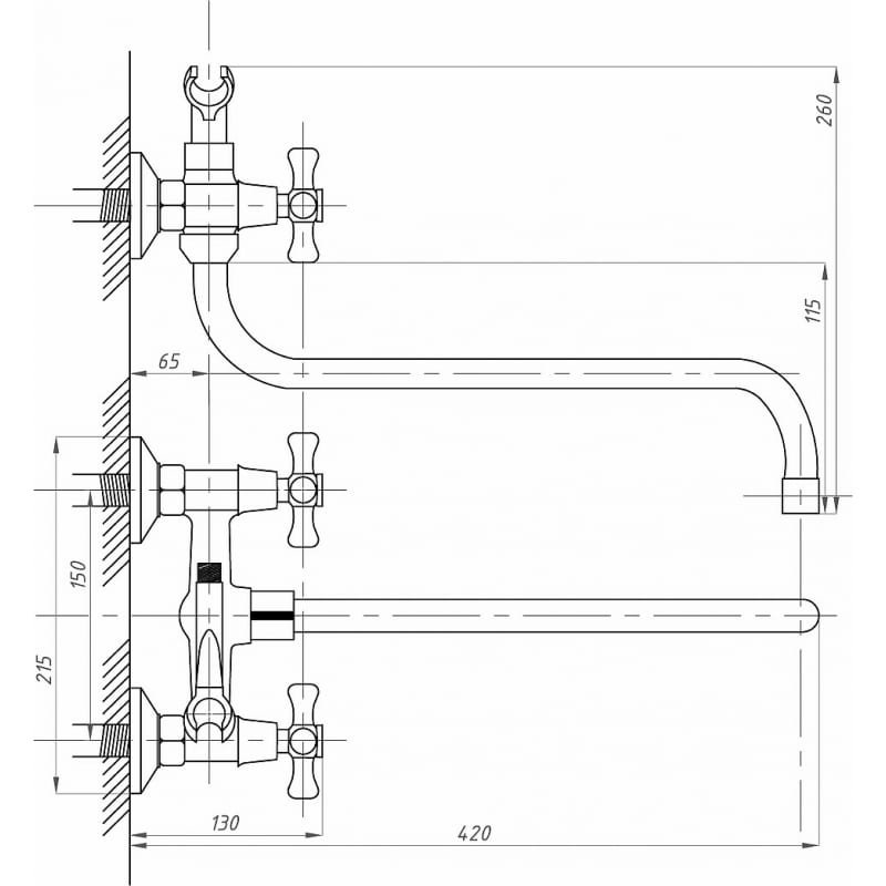 Смеситель для ванны с душем Fauzt (Фауцт) FZs-511-07 тип См-ВУДРНШлА, хром
