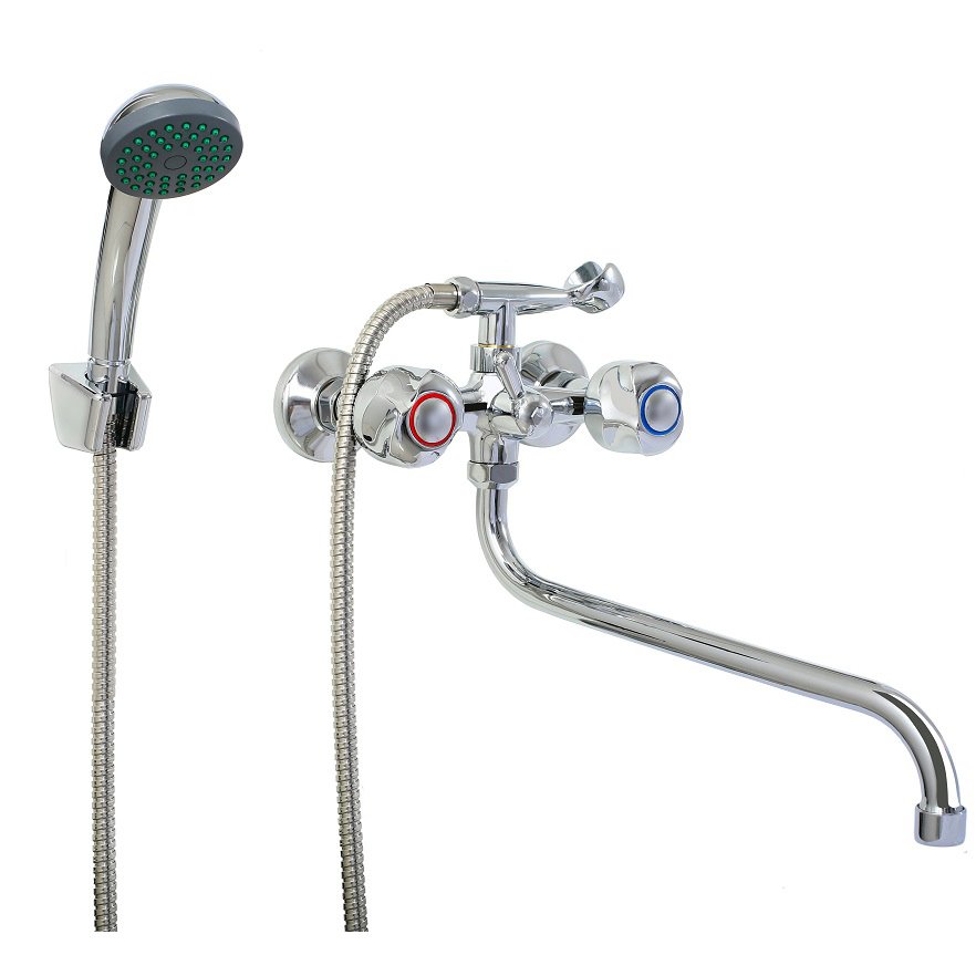 Комплектация:Корпус (литой) — 1 шт. Узел излива в сборе — 1 шт. Вентильная головка в сборе (с керамическими пластинами или резиновой манжетой) — 2 шт. Маховик в сборе артикул 48 — 2 шт. Импортный эксцентрик с отражателем типа ЕВРО — 2 шт. Душевой шланг — 1 шт. Душевая лейка стандартная — 1 шт. Держатель лейки на корпус — 1 шт. p>