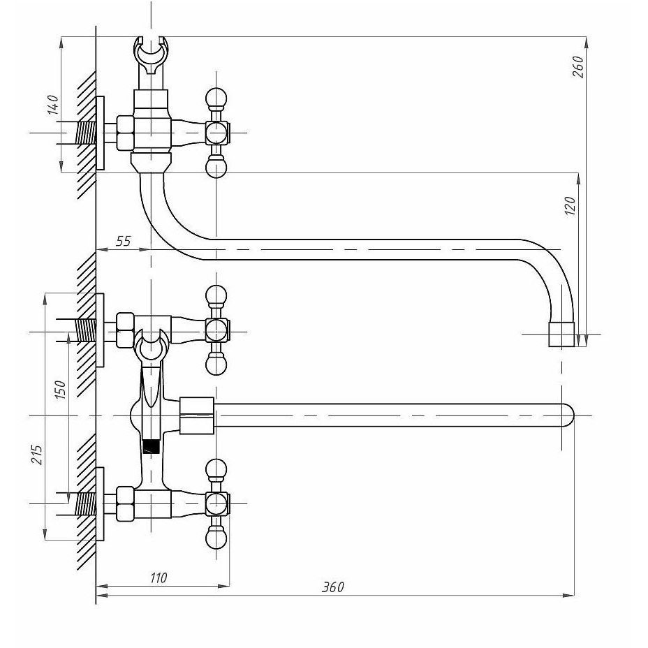 Комплектация:Корпус — 1 шт. Узел излива в сборе — 1 шт. Вентильная головка в сборе (с керамическими пластинами или резиновой манжетой) — 2 шт. Маховик Крест металлический Арт.89 в сборе — 2 шт. Эксцентрик с отражателем — 2 шт. Душевой шланг — 1 шт. Душевая лейка стандартная — 1 шт. Держатель лейки на корпус — 1 шт. p>