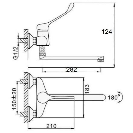 Смеситель для ванны с хирургической ручкой D-Lin (Д-Лин) D140427, хром