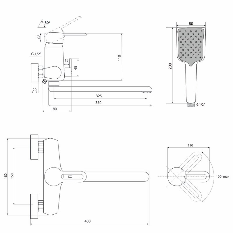 Длина излива (мм):350 p>