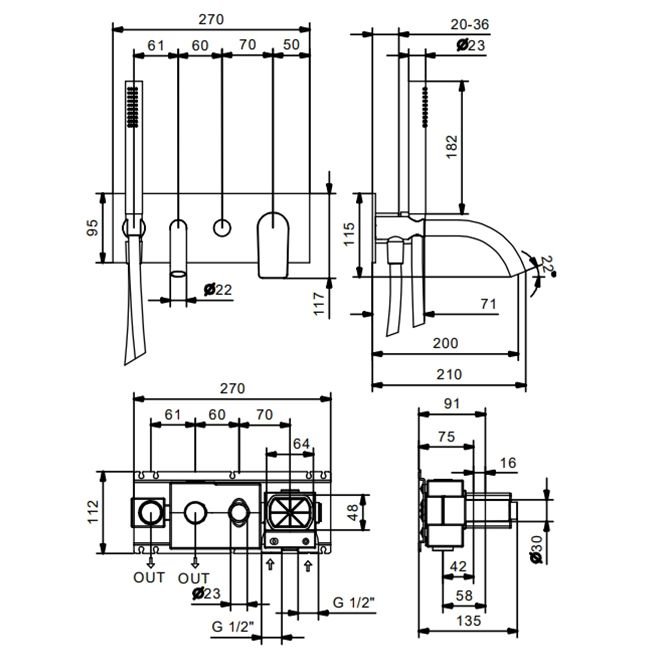 Тип установки:в стену (скрытый монтаж) p>