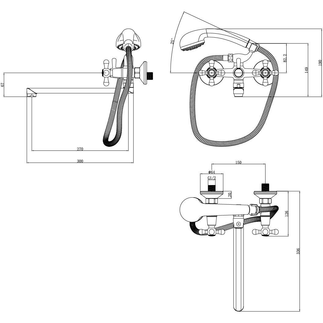 Аксессуары в комплекте: шланг 1,5 м, настенное поворотное крепление, 5-функциональная лейка