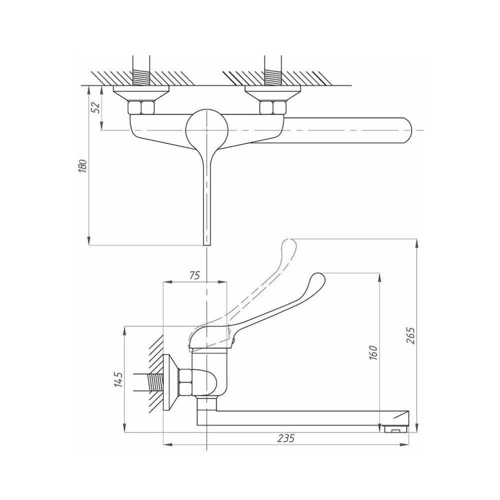 Смеситель локтевой ПСМ-Профсан (Profan) PSM-508-055 Медик настенный тип См-УмЛРНА, См-МЛРНА хром
