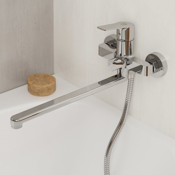 Доставка Смеситель Milardo (Милардо) для ванны с длинным изливом Helic глянцевый хром HELSB02M10 из Москва в районы и города ЮВАО, ЮЗАО, ЮАО, Новомосковский АО, Одинцово, Подольск, Щербинка, Троицк, Строительный рынок Славянский мир, 41-й км МКАД, бывшая Мельница, Красногорск, Домодедово, Тёплый стан, Коммунарка, Мосрентген, Видное, Мамыри, Краснознаменск