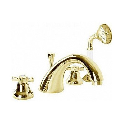 Смеситель на борт ванны Cezares (Цезарис) Lord золото, ручка ручного душа белая (LORD-BVD-03/24-Bi)