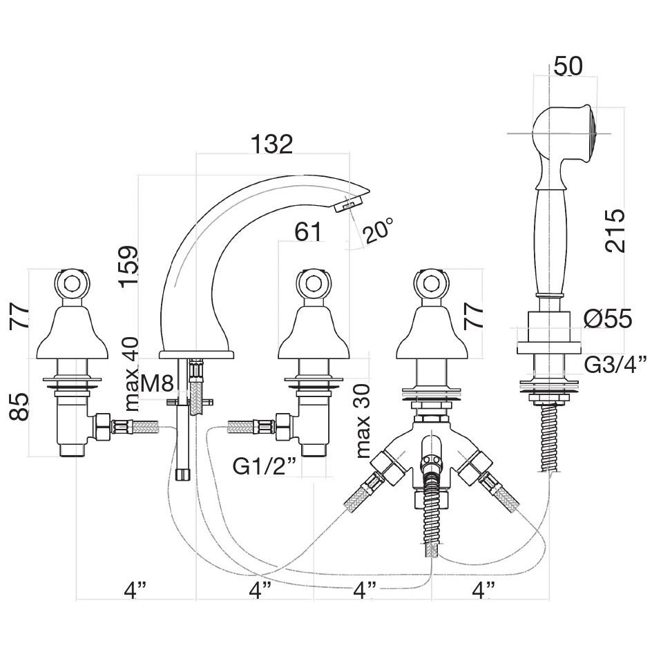 Стандарт подводки:1/2 дюйма p>