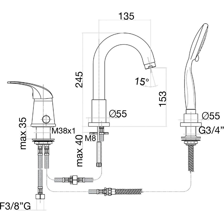 Доставка Смеситель на борт ванны Fiore (Фиоре) Max 32CR1455, хром из Москва в районы и города ЮВАО, ЮЗАО, ЮАО, Новомосковский АО, Одинцово, Подольск, Щербинка, Троицк, Строительный рынок Славянский мир, 41-й км МКАД, бывшая Мельница, Красногорск, Домодедово, Тёплый стан, Коммунарка, Мосрентген, Видное, Мамыри, Краснознаменск