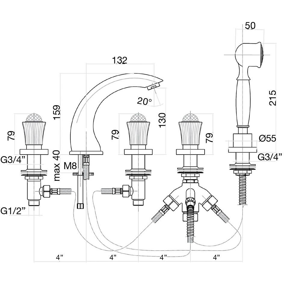 Стандарт подводки:1/2 дюйма p>