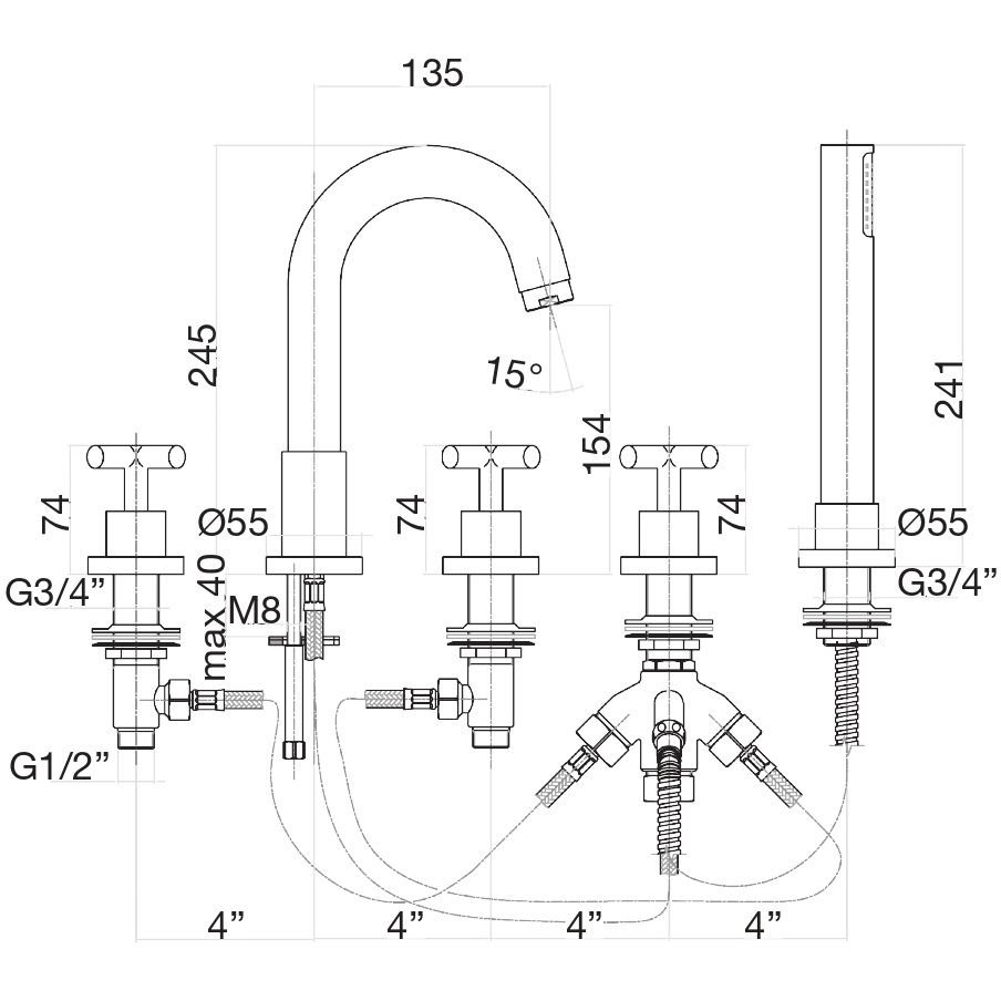 Стандарт подводки:1/2 дюйма p>