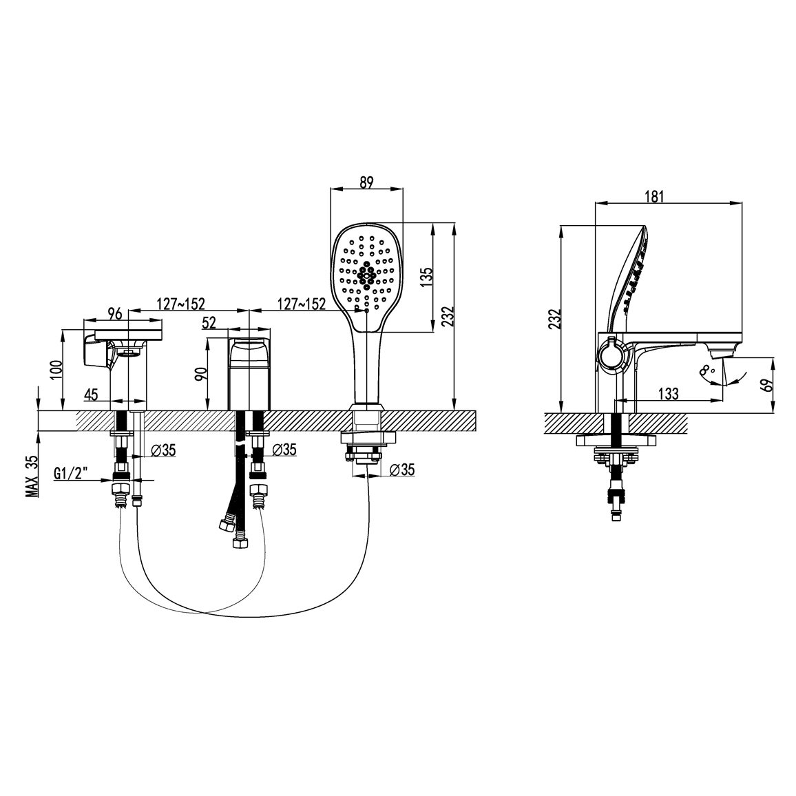 Свойства:установка на борт, с аэратором, с ручным душем, с изливом p>