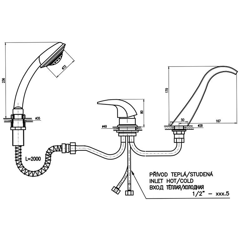 Смеситель на борт ванны Rav Slezak Dunaj D461.5YZ