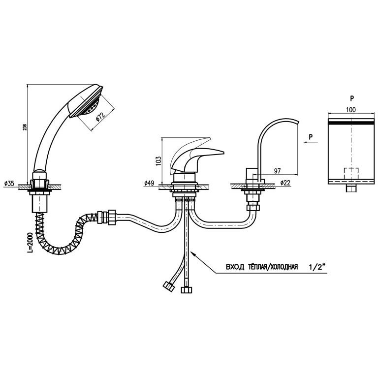 Смеситель Hansen (Хансен) для ванны H22004 хром