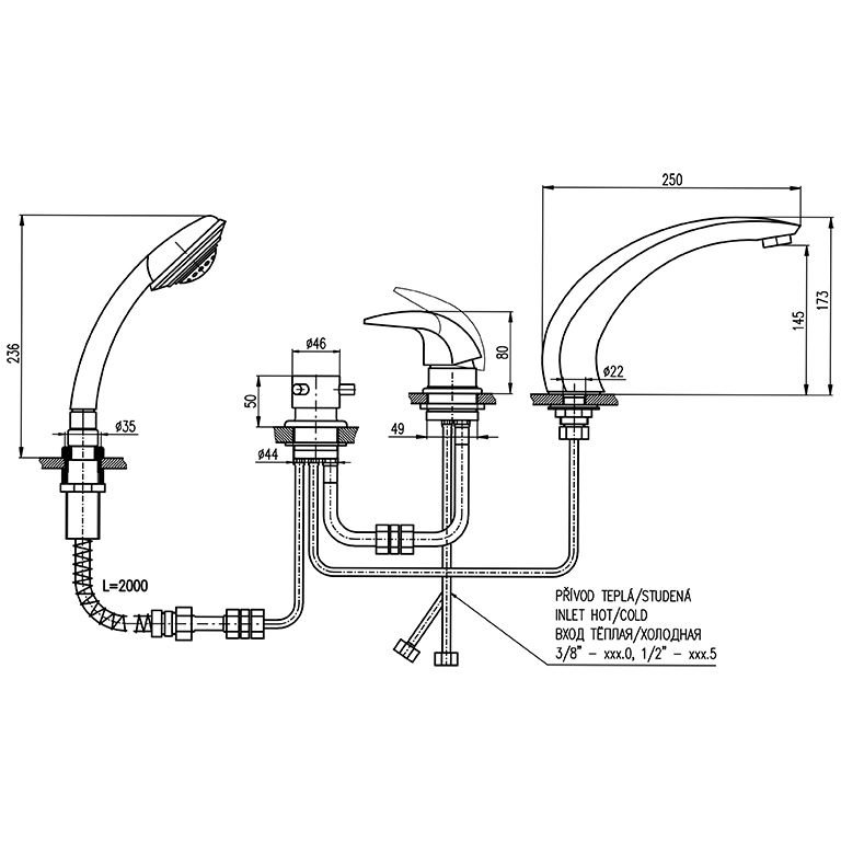 Смеситель на борт ванны Rav Slezak Dunaj D469.5SZ