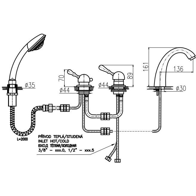 Смеситель на борт ванны Rav Slezak Labe L076.5PSM