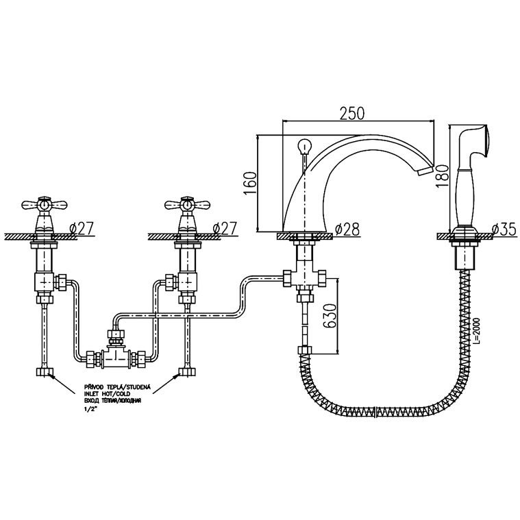 Смеситель на борт ванны Rav Slezak (Рав Слезак) Labe L071.5SSM, бронза