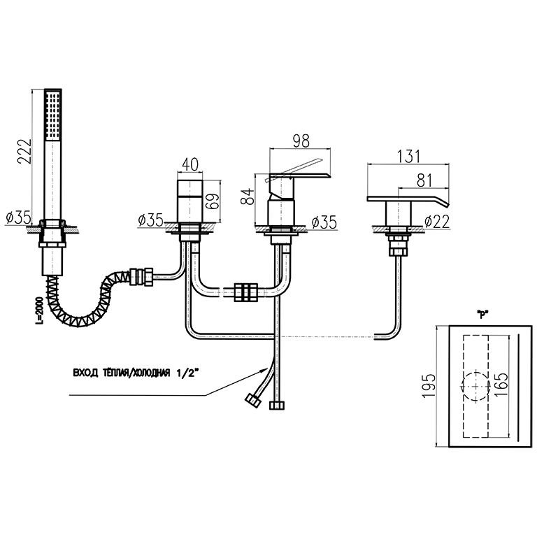 Комплектация:смеситель, шланг, душевая лейка, инструкция p>