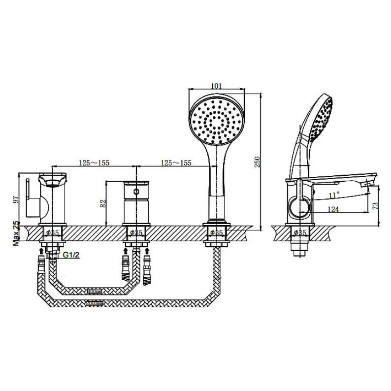 Свойства:установка на борт, с аэратором, с ручным душем, с изливом p>
