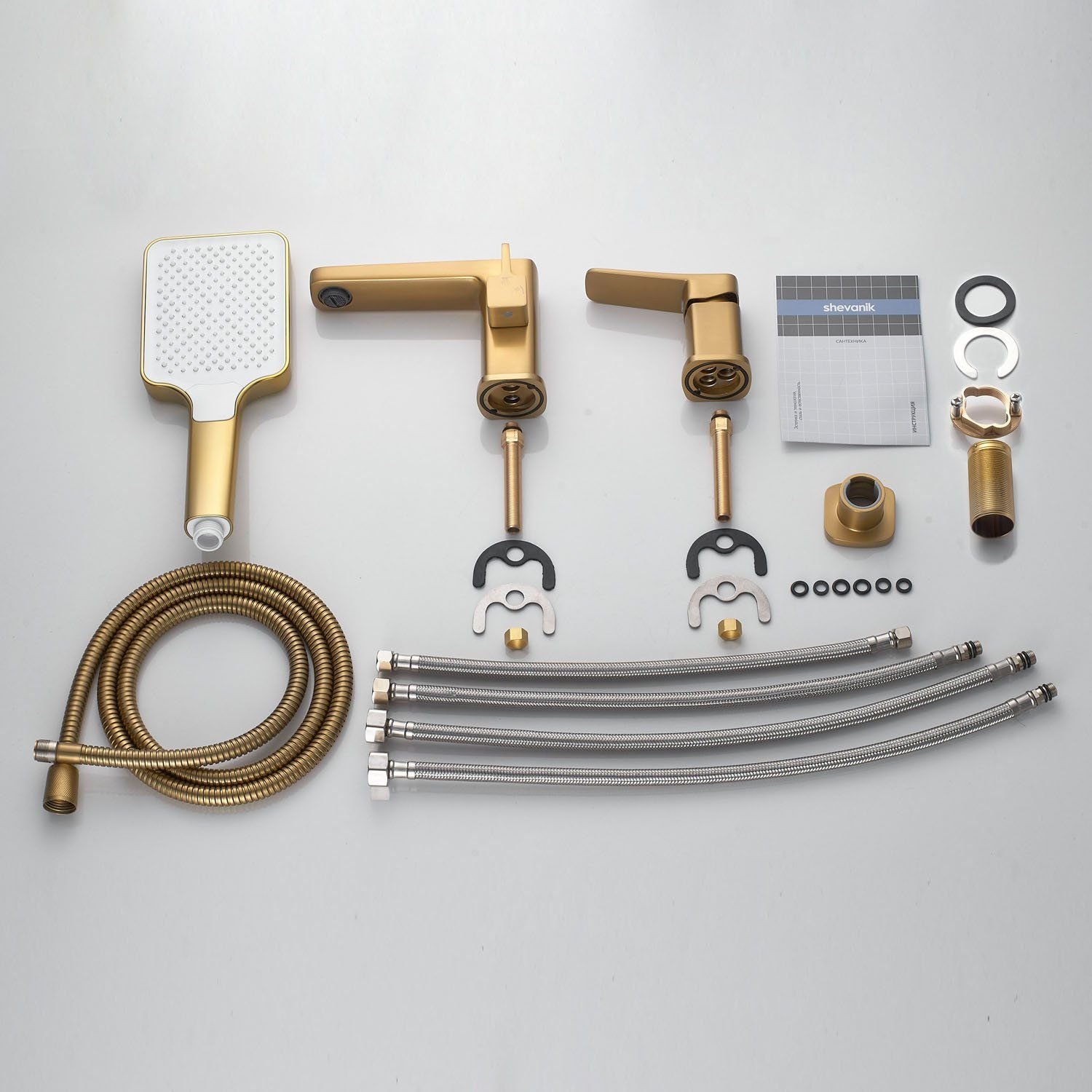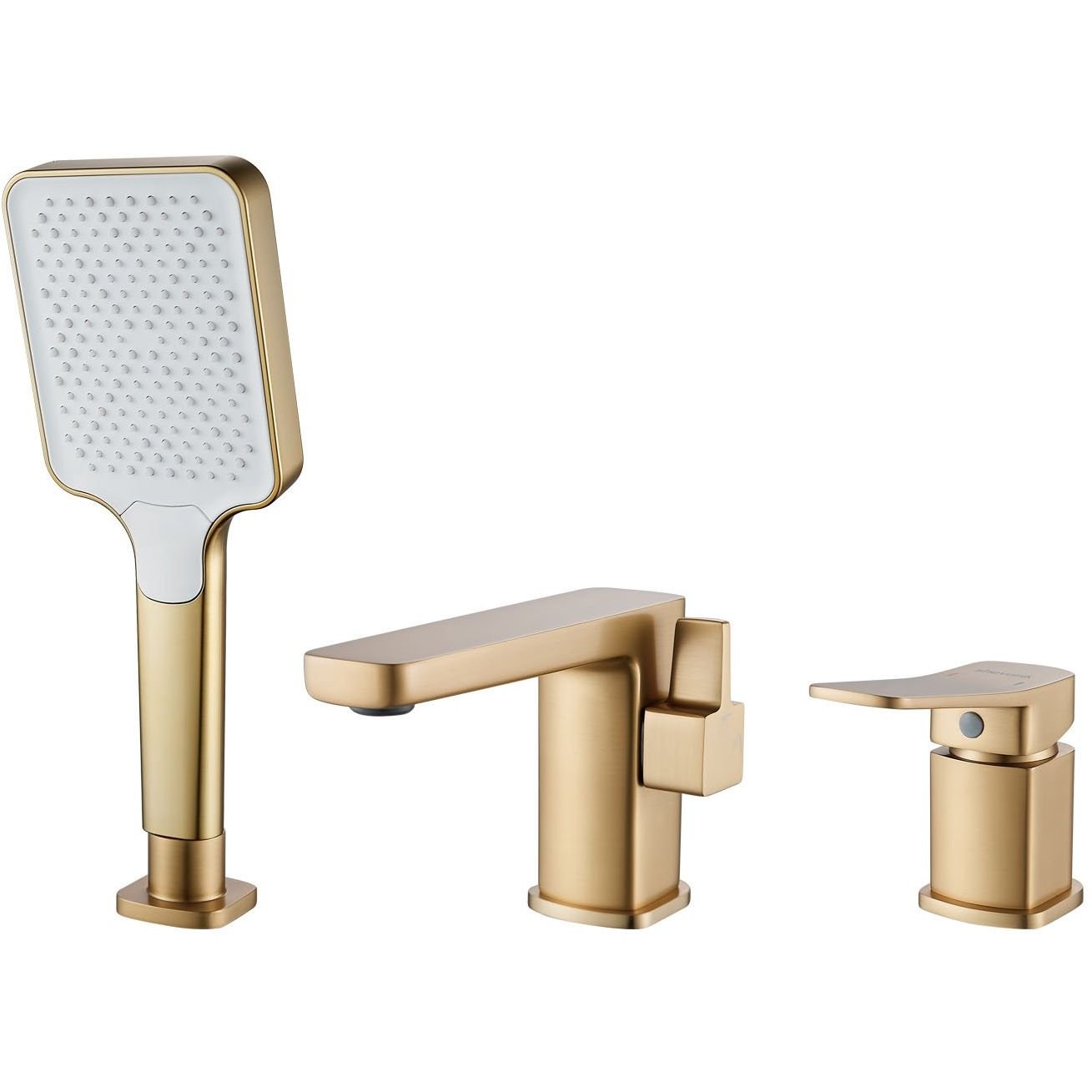 Смеситель на борт ванны Shevanik S9912G в цвете "золотой сатин" — стильное и функциональное решение для вашей ванной комнаты. Изготовлен из высококачественной латуни, что обеспечивает прочность и долговечность изделия. Современный скандинавский дизайн смесителя Shevanik идеально впишется в любой интерьер и станет его изюминкой. Смеситель имеет 3 монтажных отверстия, что позволяет установить его максимально удобно. Душевой шланг длиной 150 см обеспечивает комфортное использование, а ручной душ из ABS-пластика с тремя режимами работы позволит выбрать оптимальный вариант для каждого члена семьи. Гарантия на смеситель Shevanik S9912G составляет 5 лет, что подтверждает его надёжность и качество.