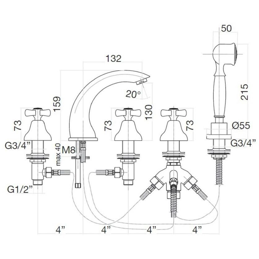Смеситель на борт ванны Webert (Веберт) Armony AM730401015, хром