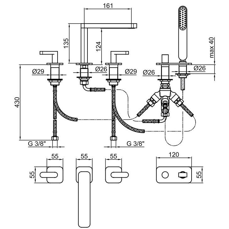 смеситель, внутренняя часть, лейка, подводка, шланг