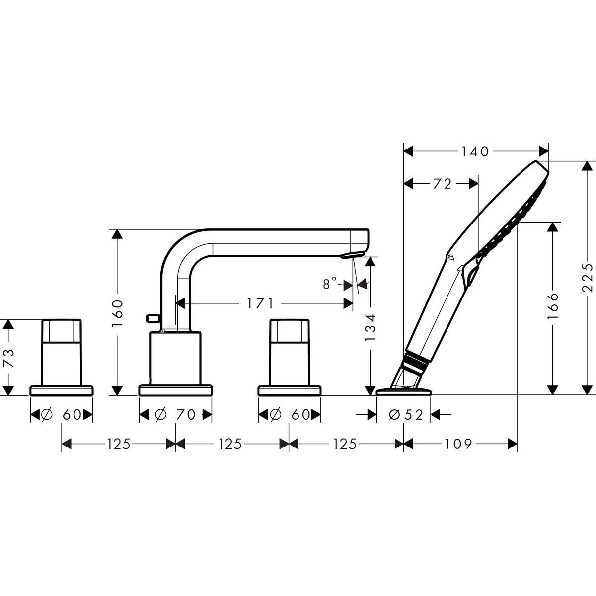Смеситель на край ванны Hansgrohe (Хансгрое) Metris S на 4 отверстия31443000 хром