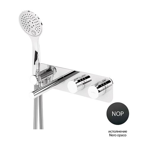 Встраиваемый термостатический смеситель для ванны и душа однорычажный, в комплекте с ручным душем, исполнение черный матовый