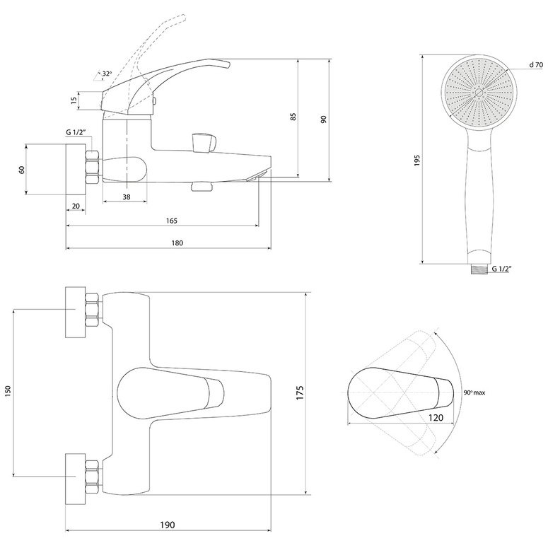 Смеситель для ванны и душа PlStart (Питстарт) (PL2210) хром