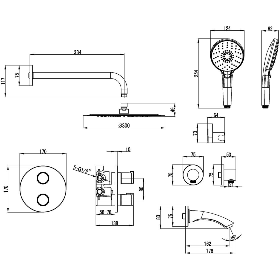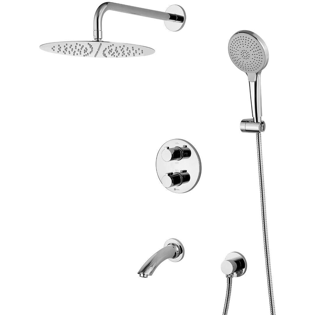 Комплектация:Встраиваемый наполнитель для ванны с аэратором Neoperl® Cascade® Термостатический картридж Sedal® с гелевым термоэлементом и фиксатором 4-позиционный картриджный переключатель (угол поворота - 360⁰) Верхняя поворотная душевая лейка «Тропический дождь» Ø300 мм 3-функциональная лейка Ø124x254 мм Настенное поворотное крепление для лейки Душевой шланг 1,5-2 м, растяжной, с функцией вращения лейки без перекручивания (Turn-Free) Подключение для душевого шланга Пластиковые рукоятки p>
