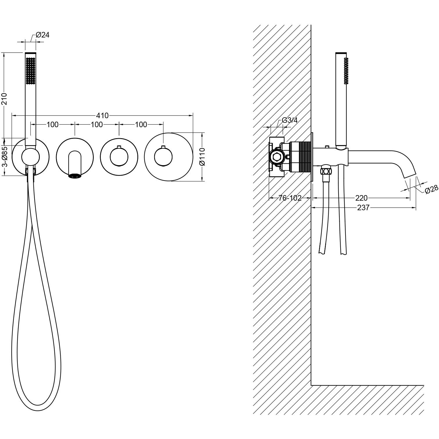 Цвет "матовое золото" никогда не выйдет из моды, во все времена драгоценный металл был признаком богатства. Встраиваемый смеситель Timo Saona 2324 предназначен для монтажа в твердой или полой стене. Уникальная дизайнерская модель с раздельными горизонтальными блоками создаст неповторимый современный интерьер в ванной комнате. Основные преимущества встроенного смесителя: коммуникации, крепления и механизмы спрятаны в стену и видны только декоративные элементы, установить встроенный смеситель можно в любом месте. Термостатический картридж поддерживает стабильную температуру воды, обеспечивая максимально комфортные условия для принятия водных процедур. Стильная лейка-карандаш удобна в использовании и фиксируется в держателе с подключением шланга для душа. Регулировка температуры и напора воды осуществляется джойстиком справа. Переключение потока воды с излива на ручную лейку осуществляется поворотом ручки дивертора. Сложностей монтажа не возникает при установке смесителя опытным сантехником. Внимательно изучите инструкцию по монтажу и эксплуатации.