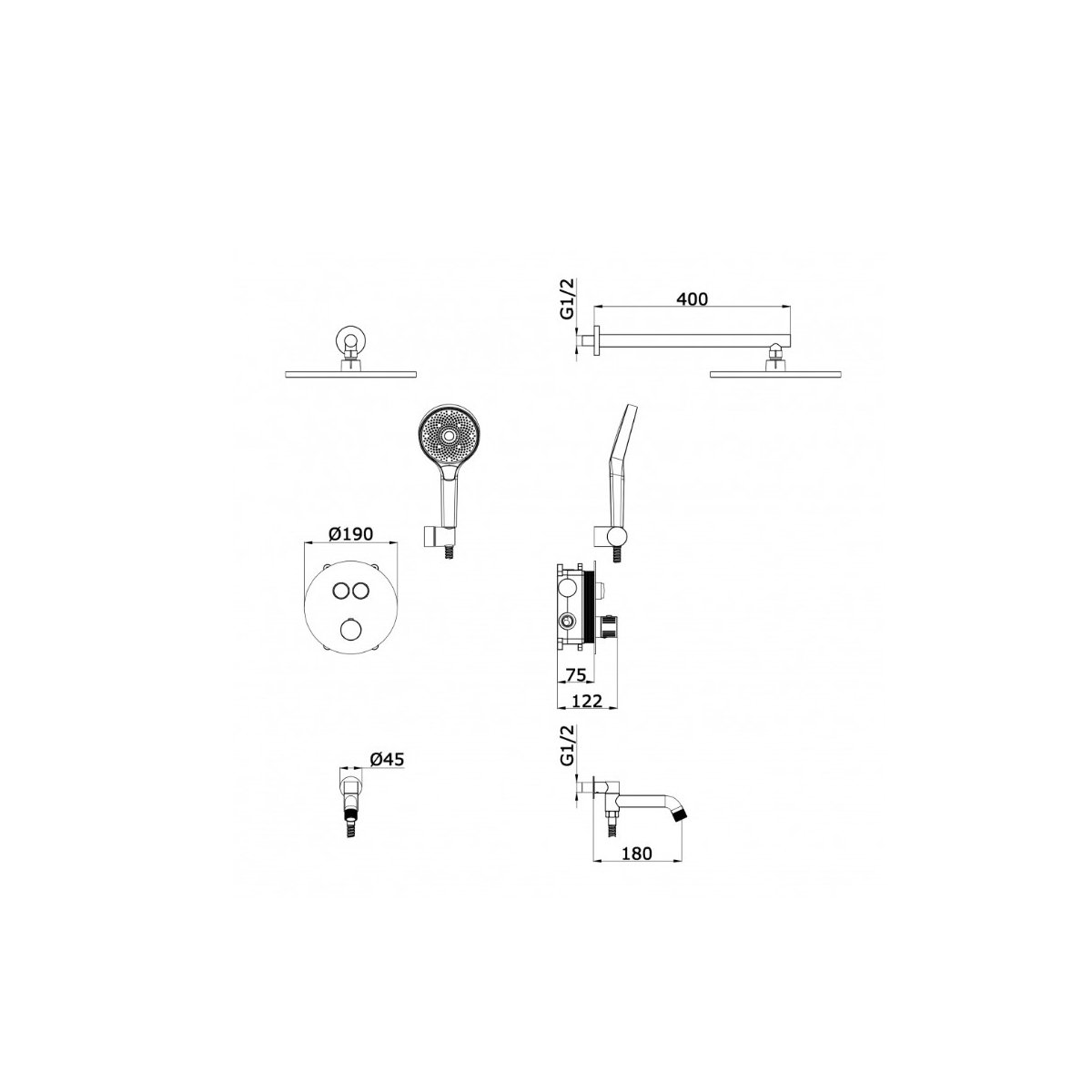 Свойства:скрытого монтажа, с тропическим душем, с ручным душем, с изливом p>