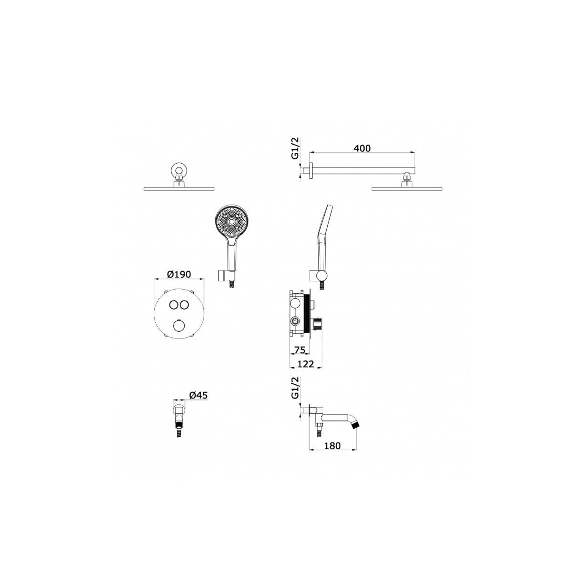 Свойства:скрытого монтажа, с тропическим душем, с ручным душем, с изливом p>