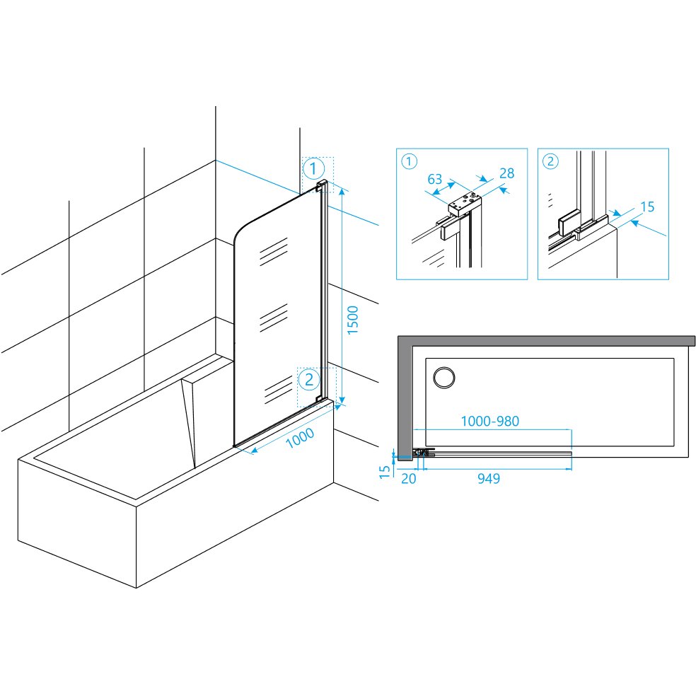 Шторка на ванну, маятниковая дверь. Толщина закаленного, безопасного стекла 8 мм. В комплекте нижняя пороговая планка. Функция подъема стекла с доводчиком.